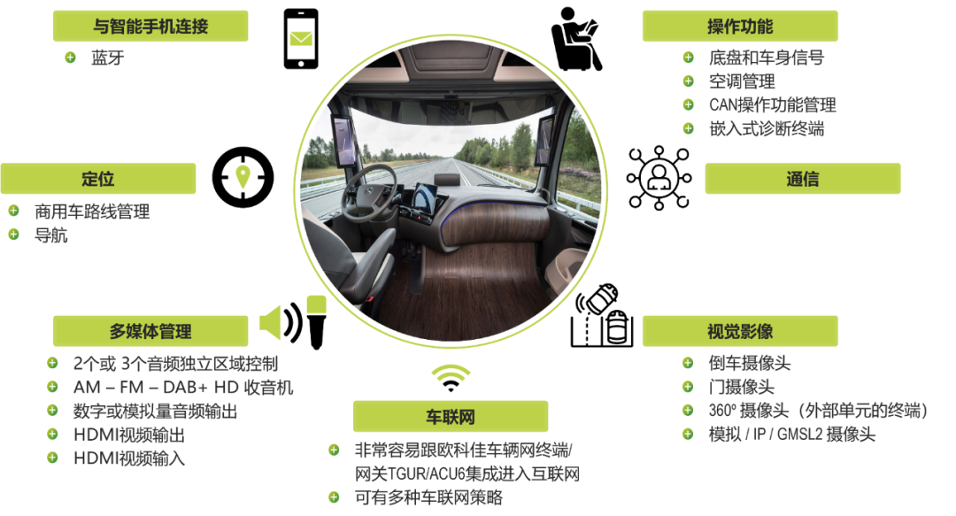 作為客車、公交車專屬影音系統(tǒng),ACTIVI數(shù)字座艙以“安全駕駛,舒適的乘坐體驗(yàn)”為研發(fā)原則,擁有安全的影音分區(qū)、安全的外接數(shù)據(jù)共享及操控管理、安全的麥克風(fēng)優(yōu)先級(jí)管理、商用車地圖、可標(biāo)定功放、客車公交車揚(yáng)聲器及車內(nèi)聲場(chǎng)方案六大優(yōu)點(diǎn)。