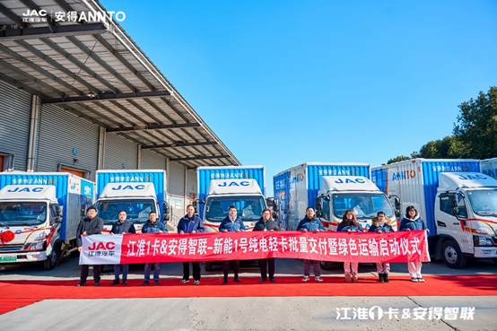 2023年12月22日,“江淮1卡&安得智聯(lián)批量交付暨綠色運輸啟動儀式”在南京隆重召開。活動現(xiàn)場多輛江淮1卡駿鈴聚寶盆EV5純電輕卡順利交付,江淮1卡與安得智聯(lián)共同積極踐行綠色供應鏈發(fā)展與ESG理念,打造城配運輸新標桿。2023年12月22日,“江淮1卡&安得智聯(lián)批量交付暨綠色運輸啟動儀式”在南京隆重召開。活動現(xiàn)場多輛江淮1卡駿鈴聚寶盆EV5純電輕卡順利交付,江淮1卡與安得智聯(lián)共同積極踐行綠色供應鏈發(fā)展與ESG理念,打造城配運輸新標桿。